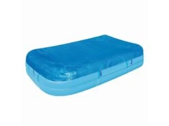 Cover (afdekkleed) voor rechthoekig familie zwembad van 305x183x56 cm. Incl. koord ter bevestiging en afvoergaten om overtollig water te lozen. Van blauw PE. Afmeting: 340×230 cm.