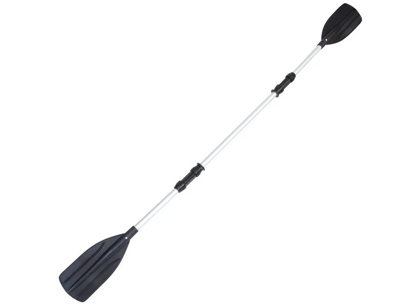 Aluminium riemen 145 cm, 2-delig. Ook te gebruiken als peddel van 218 cm. Stevige draaislot bevestiging en sterke kunststof bladen.