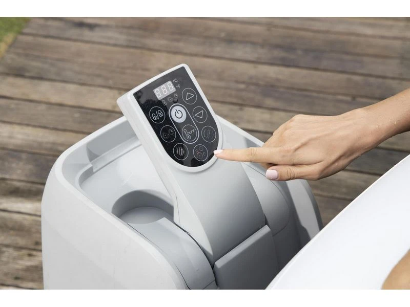 Opblaasbare ronde spa voor 2-4 personen. Zwarte buitenkant van DuraPlus materiaal en een liner met mozaïek print op de bodem. Pomp heeft een nieuw flip up controle paneelcontrolepaneel met modern touchscreen en klein plateau voor bekers enz. Pomp beschikt ook over Power Saving System (automatische start/stop timer) en Freeze shield (gaat automatisch aan onder 4° C). Het hele jaar door te gebruiken. Met ingebouwde drainagepijp en 2 handgrepen, opblaasbare cover, filtercartridge, reparatiepatch en een Chemconnect. Verhoogt de temperatuur met 1,5-2,0° C per uur. Max. temperatuur 40° C. Filtercapaciteit: 1,3 m³/u. Watercapaciteit: 669 ltr. CE/GS gekeurd. Afmeting buiten: Ø 180×66 cm, binnen: Ø 132 cm.