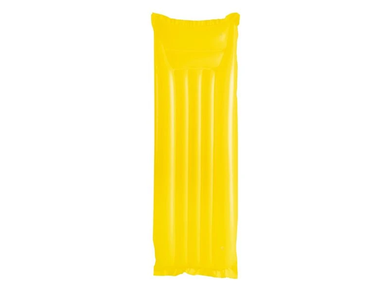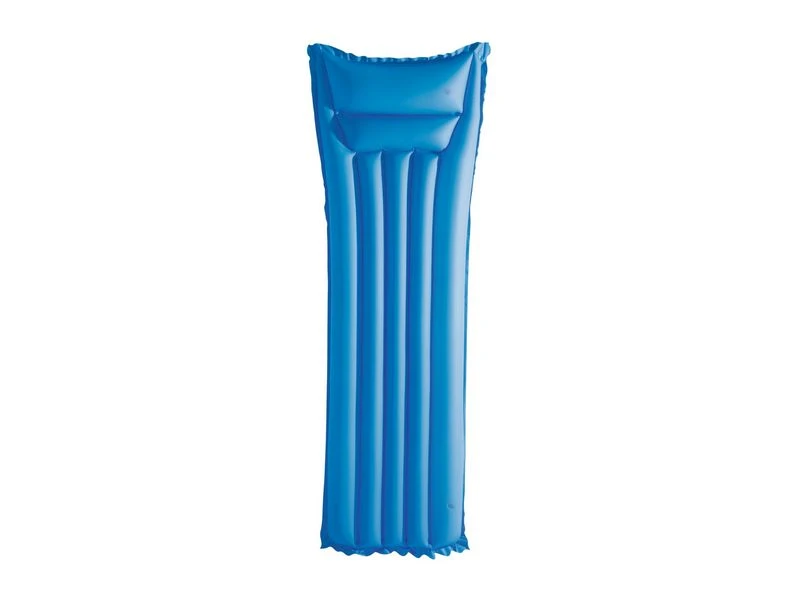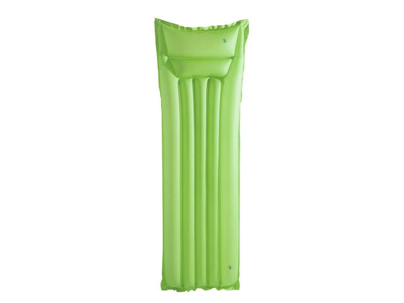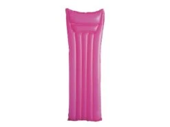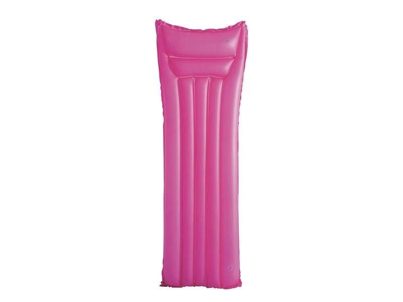 Luchtbed in felle unikleuren. Het hoofdkussen heeft een 2 kamer ontwerp. Incl. reparatie patch. In 3 kleuren assorti: roze, groen en blauw. Voor 1 persoon met een max. gewicht van 90 kg. Van 0,18 mm vinyl. Afmeting: 170x54x15 cm.