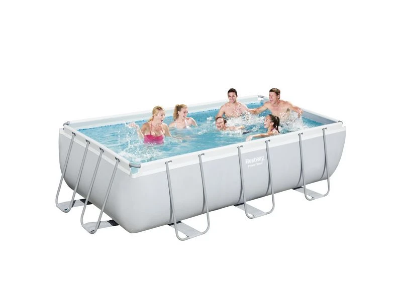 Rechthoekig stalen frame zwembad in stabiele uitvoering in de kleur grijs. Sterk frame (U-vormige poten), wat iets uitsteekt en met een blauwe liner met een verrassende mozaïek print aan de binnenzijde. Gemakkelijk te installeren, zonder verder gereedschap. Van duurzaam Tritech materiaal, bestand tegen Uv-stralen en chloor. Getest op gewicht en druk van grote hoeveelheden water. Incl. Chemconnect chloordispenser, trap en 12 V. cartridgefilter van 2,0 m³/u. Gemiddeld eens per 2 weken de cartridge vervangen,