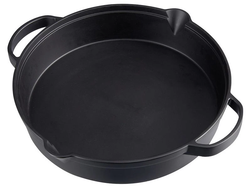 De gietijzeren braadpan met geïntegreerd roestvrij stalen rek biedt tal van gebruiksmogelijkheden. Braad grote stukken vlees of zelfs een hele kip, of verwijder het rek en maak een stoofschotel of apple crumble.