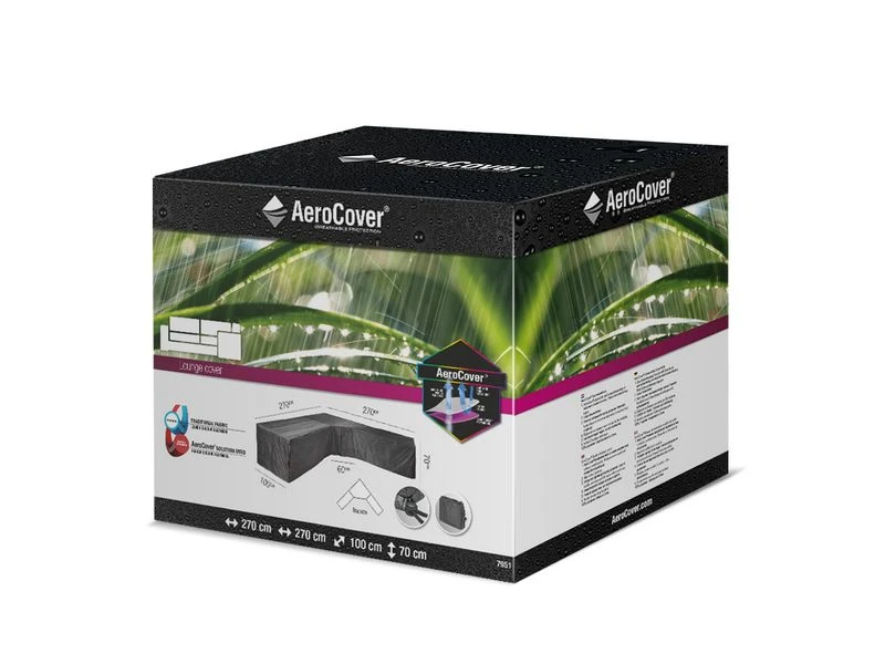 Loungesethoes voor hoeksets van AeroCover. Ademende loungesethoes voor L-vorm loungeset met grote hoek of trapeze hoek 270x270x100x70. AeroCovers zijn ademend, waterbestendig, reduceren condensvorming en gaan schimmelvorming tegen. De stof heeft een hoge kleurechtheid dankzij de door en door geverfde vezels. Een AeroCover hoes verlengt de levensduur van uw tuinmeubelen. AeroCovers zijn vervaardigd van sterk en lichtgewicht ripstop polyester. Ze zijn makkelijk hanteerbaar en nemen weinig ruimte in wanneer niet in gebruik. De afdekhoes is voorzien van rijgkoord met 2 stoppers voor een goede pasvorm. Inclusief handige opbergtas. AeroCover stoffen zijn 100% waterdicht, de naden zijn, net als elke ander hoes, spatwaterdicht.