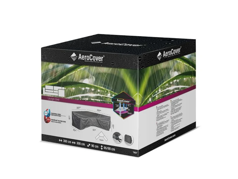 Loungesethoes voor hoeksets van AeroCover. Ademende loungesethoes voor L-vorm loungeset met grote hoek of trapeze hoek en hoge rug 300x300x90xH65/90. AeroCovers zijn ademend, waterbestendig, reduceren condensvorming en gaan schimmelvorming tegen. De stof heeft een hoge kleurechtheid dankzij de door en door geverfde vezels. Een AeroCover hoes verlengt de levensduur van uw tuinmeubelen. AeroCovers zijn vervaardigd van sterk en lichtgewicht ripstop polyester. Ze zijn makkelijk hanteerbaar en nemen weinig ruimte in wanneer niet in gebruik. De afdekhoes is voorzien van rijgkoord met 2 stoppers voor een goede pasvorm. Inclusief handige opbergtas. AeroCover stoffen zijn 100% waterdicht, de naden zijn, net als elke ander hoes, spatwaterdicht.