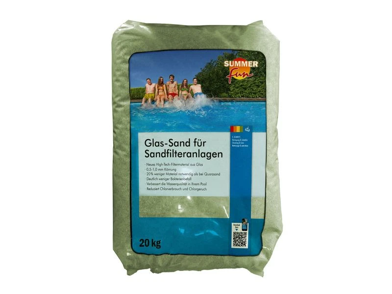 Fijn filterglas voor zandfilters. Een milieuvriendelijk alternatief voor zand met een zeer lange levensduur. Het bestaat uit gerecycled glas met een korrelgrootte van 0,5-1,0 mm. Inhoud: 20 kg.