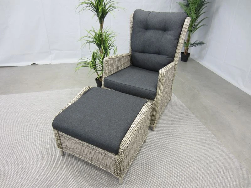 Loungestoel en voetenbank zijn eenvoudig schoon te houden met warm water, groene zeep en een zachte borstel.