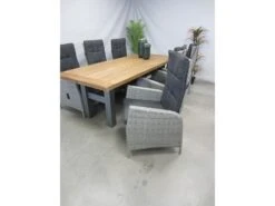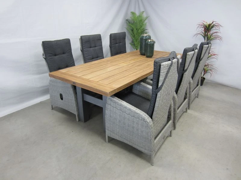 6 verstelbare tuinstoelen met teak tuintafel 240 x 100 cm.