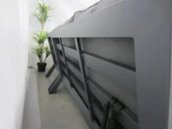 De Jackson aluminium hoek-lounge set is gemaakt van een aluminium frame. Het zitgedeelte is gemaakt van geheel aluminium,en het ruggedeelte is uitgevoerd met dikke aluminium buizen. De set heeft een stoere uitstraling. Deze lounge set wordt uiteraard geleverd inclusief vuil- en waterafstotende kussens. Deze hoek-lounge-set bestaat uit twee 2 2-zits lounge-banken, een XL corner, een centerdeel en een tafel. De totale afmeting van de set is 290 x 370 cm. De set is ook omkeerbaar te plaatsen. De tafel heeft een afmeting van 83 x 83 x H 35 cm.