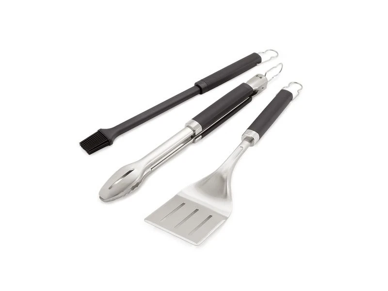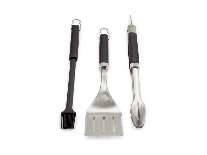 Keer burgers en groenten om of bestrijk ribstukken met extra smaak. De 3-zijdige spatel met afgeschuinde randen, tang met handsfree vergrendeling en grote silicone marinadekwast in onze 3-delige Precision barbecueset zijn je dagelijkse barbecuegereedschappen in één set. Alle gereedschappen hebben een zachte handgreep voor een comfortabele en veilige grip.