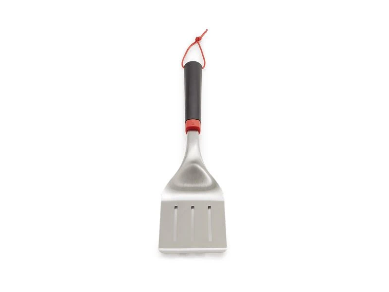 Probleemloos keren van burgers en steaks van de barbecue halen met deze roestvrijstalen spatel. Deze essentiële barbecue-accessoire is lang genoeg om je hand ver weg te houden van de warmte en is vaatwasserbestendig.
