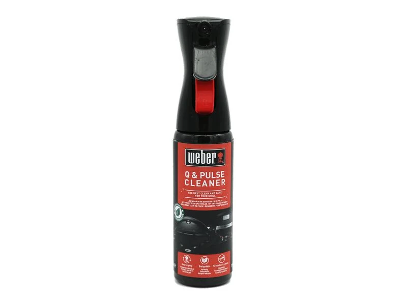 De Q- en Pulse-reinigingsspray met fijne nevel maakt op effectieve wijze de buiten- en binnenkant van Weber® Q- en Pulse- barbecues schoon. Als je de spray regelmatig gebruikt, blijft je barbecue het hele jaar lang glanzend en schoon.